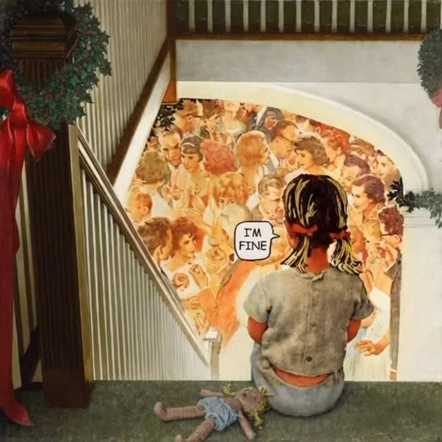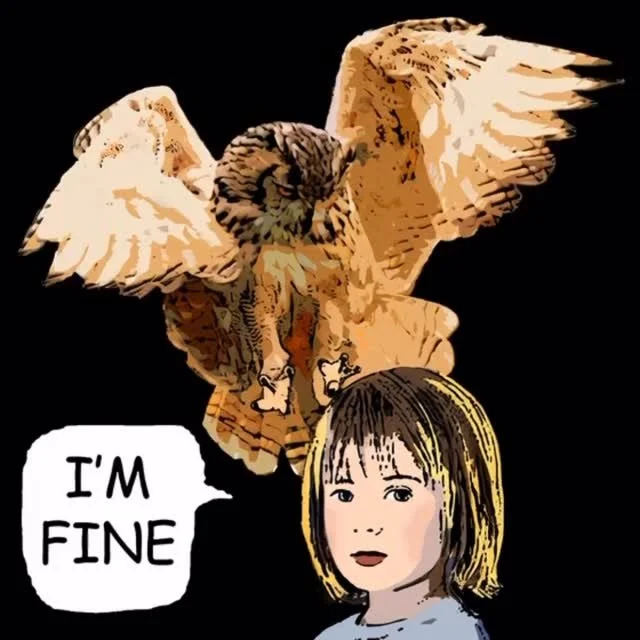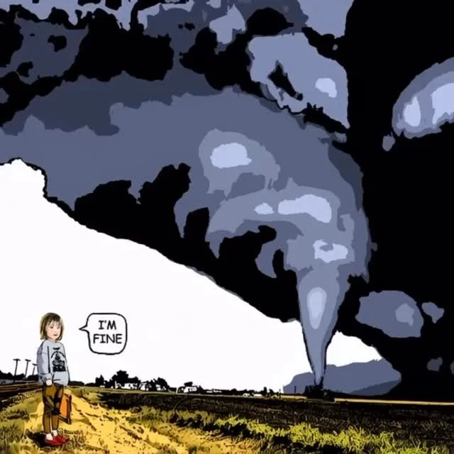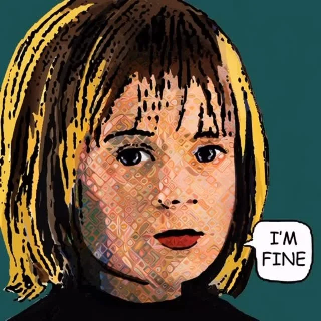 One day, as those words left my mouth, I saw their paradox. My world was collapsing, yet the brave little girl inside me knew she had to survive. That moment became the seed of The I’m Fine Project: a series of paintings where a small, unflinching girl carries the weight of modern life with wit and wonder.
